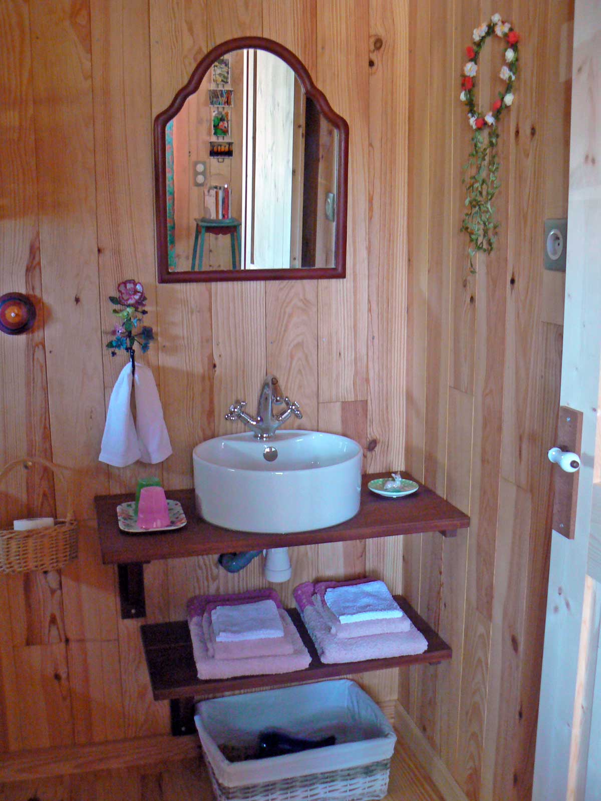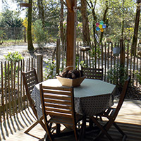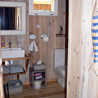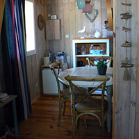 La cabane dispose d'un couchage de 2 personnes en rez-de-chaussée et d'une mezzanine (2 à 3 couchages)